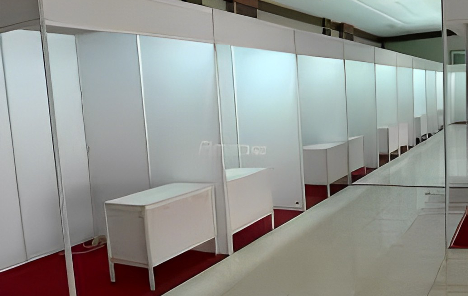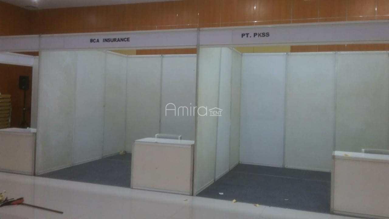 Kami menyediakan jasa rental Partisi Pameran guna mempercantik tampilan kavling area pameran dengan standar internasional menggunakan partisi r8 System untuk membuat temporary booth. Stand-stand dibagi dengan susunan partisi yang disesuaikan dengan ukuran yang dikehendaki berdasarkan luas area yang tersedia.