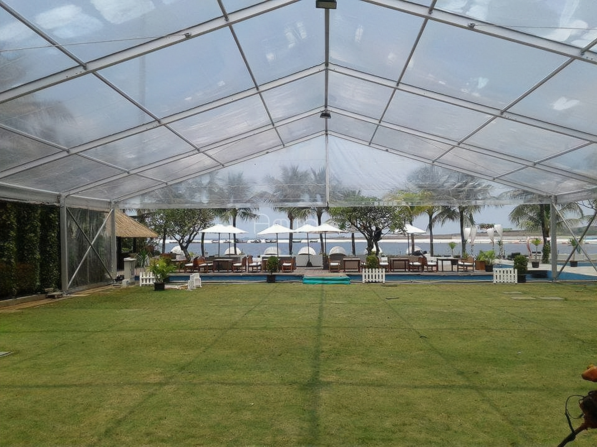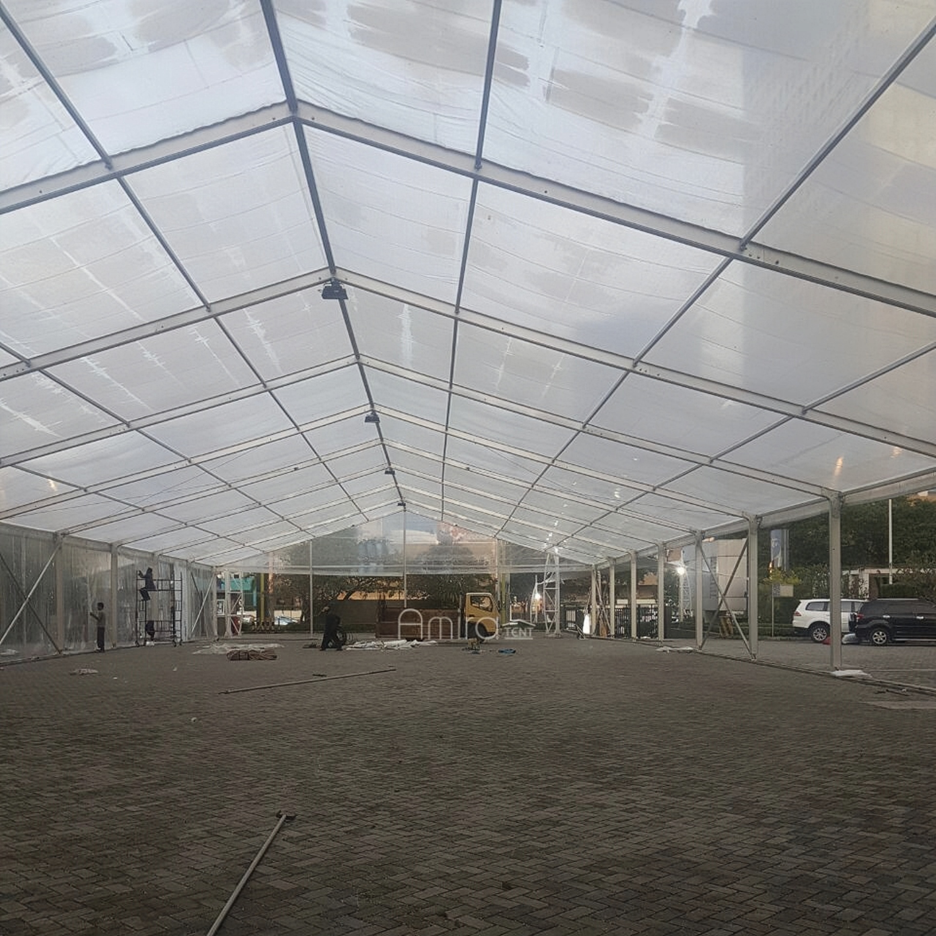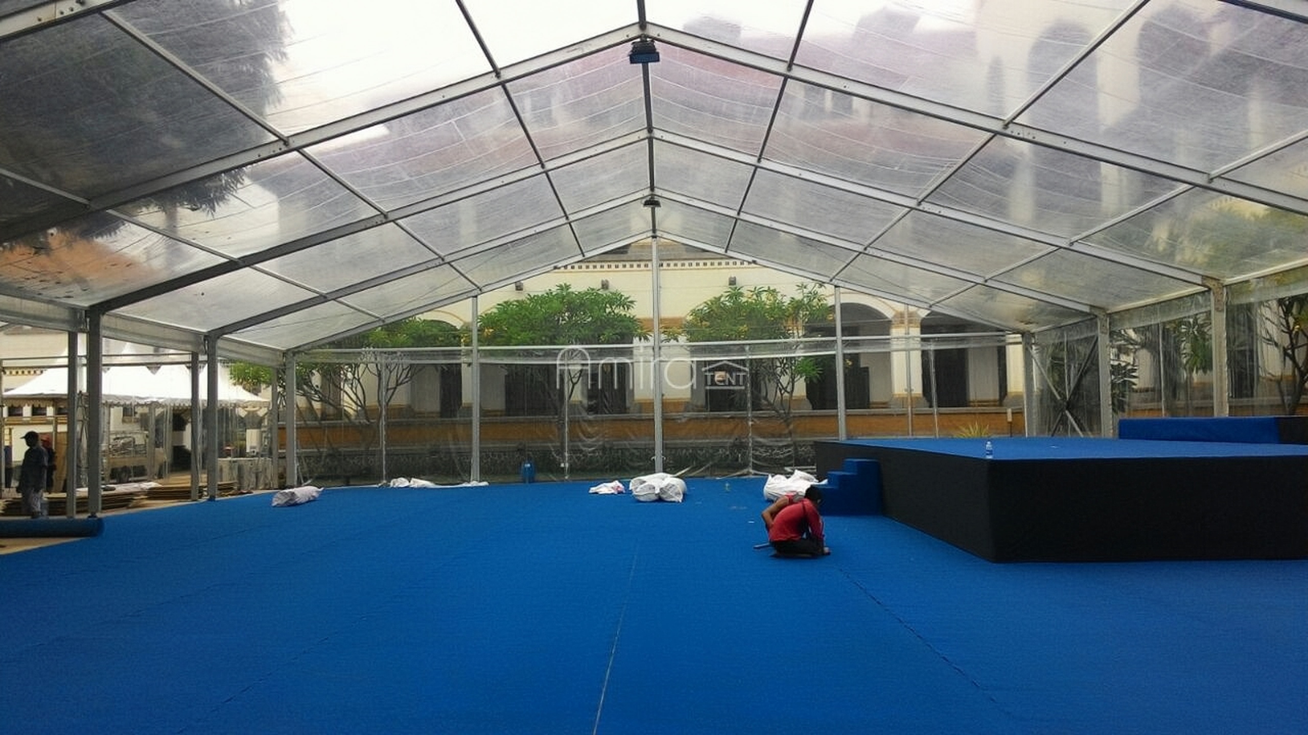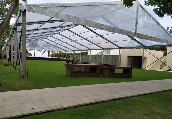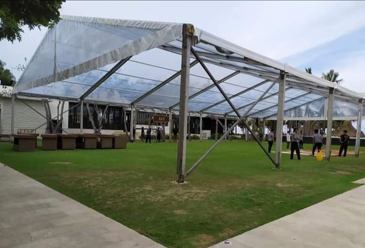 Tenda Roder Transparan bermodel Polos Transparan dan dinding Transaparan di tambah dengan Misti Fan Atau AC untuk sirkulasi udara. Tenda Roder Tarnsparan biasa digunakan untuk event: